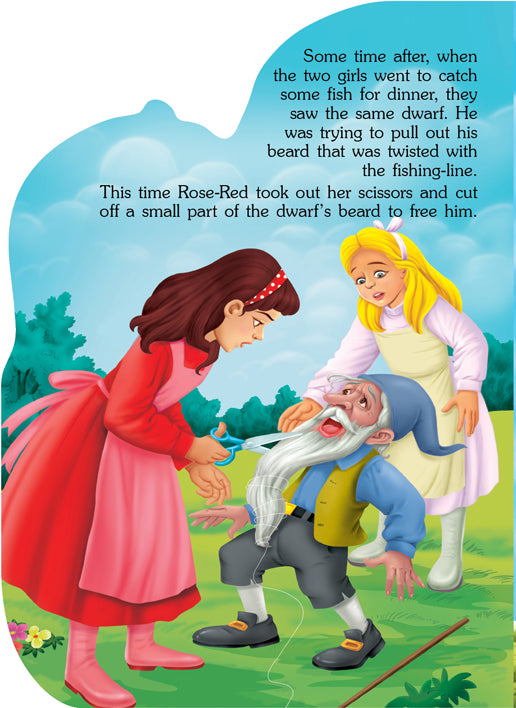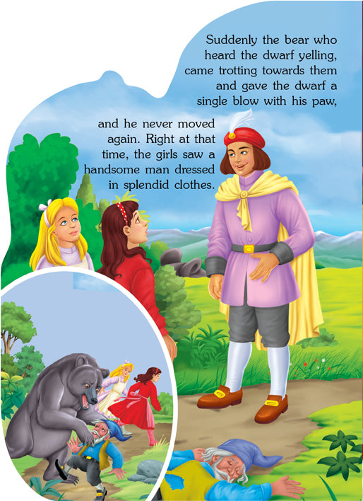 Snow-White and Rose-Red is a story of two kind-hearted sisters. They help a bear who was bewitched by a wicked dwarf and at the end; Snow-White gets married to the Prince and Rose-Red to his brother. Featuring 12 pages of captivating illustrations, ‘Wonderful Story Board-Book – Snow-White and Rose-Red’ is one of the well-loved fairy tales. • Ideal for ages 4-6 • Beautifully illustrated • Sturdy board book • Attractive die-cut design • Cute cover • Fully-laminated pages This classic retold tale with a cute die-cut presentation is sure to capture tiny tots’ interest, page after page, as they take their imagination on a magical journey. It is indeed to remain a favourite of children to read or listen to again and again.