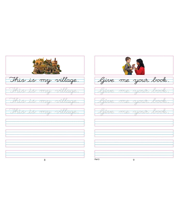 Cursive writing is written with rounded letters that are joined together. Cursive Writing Books – A set of 7 books shows how to perfectly write each cursive upper and lower case letter, join them, form words, and then write sentences. Each book simply keeps children busy with mind-stimulating exercises. • Ideal for ages 3-7 • Ample practice pages in each book • Enhances independent learning • Colourful presentation • Keep children motivated This set of seven books is an excellent step to improve handwriting. These books speak with children through pictures that make understanding of the words easier and learning handwriting enjoyable.