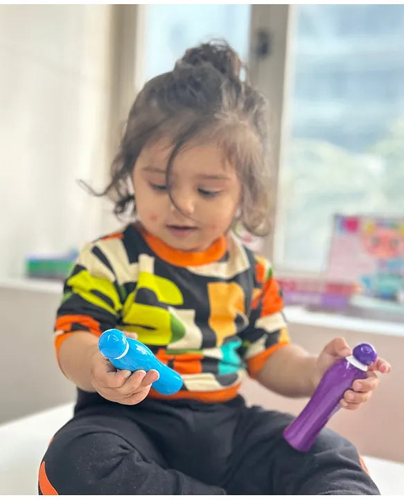 Scoobies new and quirky Hot Dot Markers are especially curated for tots and toddlers. Ergonomically made in a sleek cylindrical shape, it is easy to grip and use. It is an ideal set for doing painting with no mess and no brush. The nips are waterproof and can be easily washed off the skin and most of the fabrics. Let your little one enjoy dabbing and dotting with no worry of spoiling hands!