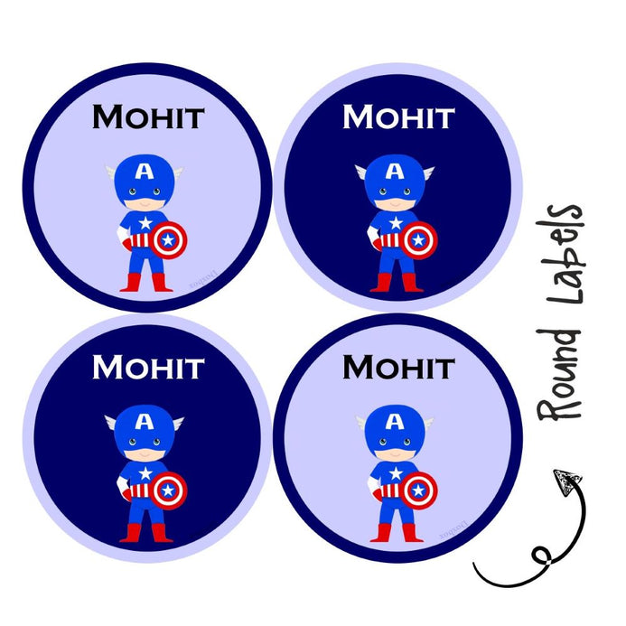 Personalised Round Name Labels | Captain America