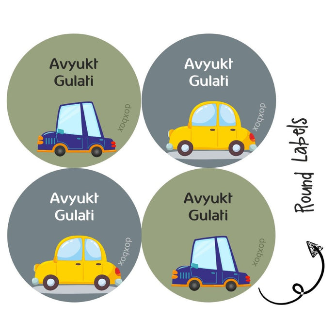 Personalised Round Name Labels | Cute Car