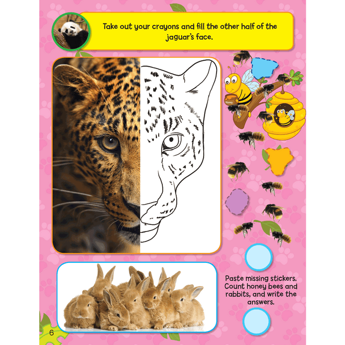 Every child loves animals. Full of bright and colourful pictures, stickers and fun activities ‘Sticker Activity Book – Jungle Animals’ introduces little learners to jungle animals. Making sticker play fun for young kids, this book has a lot of stickers to enjoy learning. • Ideal for ages 3-6 • 16 pages with 2 pages of stickers • Colourful presentation • Cute cover design • Encourages independent learning This book offers not just stickers but fun facts too that help children learn about jungle animals. The activities included in the book helps tiny tots develop their creativity and motor skills.