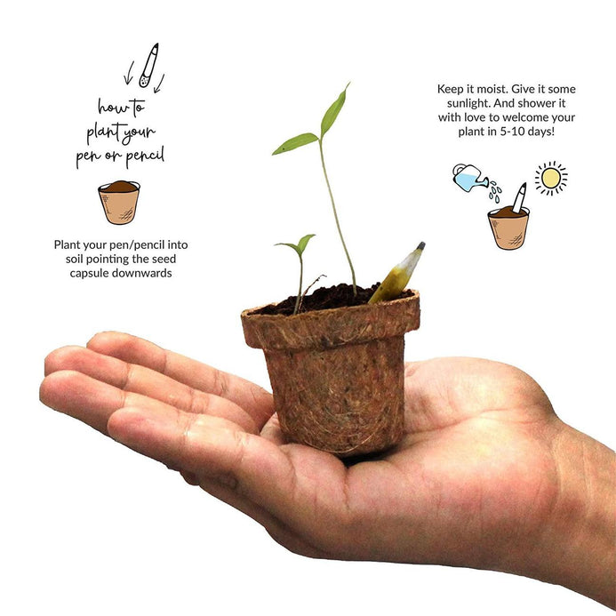 YOUR IMPACT: with over 4 crore disposable plastic ball pens and wooden pencils being made in india everyday, the stationary industry is a big contributor to environmental pollution. These carbon negative products are an attempt to reduce plastic waste and deforestation, while also letting you grow some plants in an easy and fun manner.