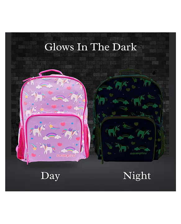 • Spacious Storage : Unicorn Glow in the dark bag comes with an internal stationery pocket to manage pencil, pen, and other stationery essentials in an organized manner. It has a voluminous main compartment with 2 internal divisions to accommodate schooling items and has dual water sleeves on both sides. Top pocket with zippers to store mini essentials.