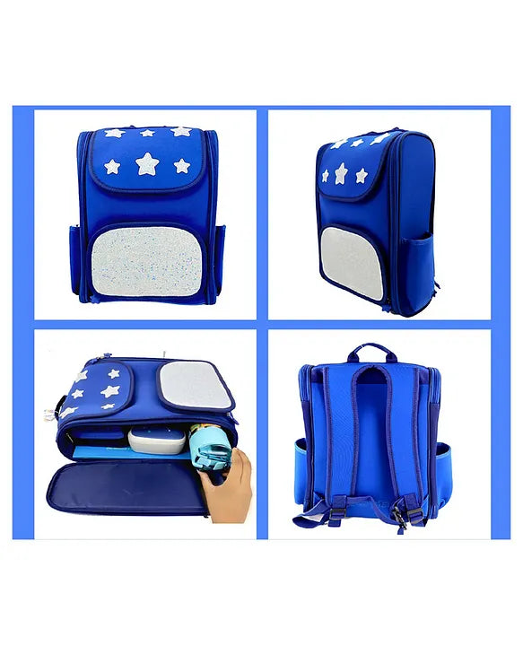 • Design - In navy blue color, this bag gives a classy touch to your look. There are dream-like stars at the top. It comes with an attached glittery EVA case at the front.