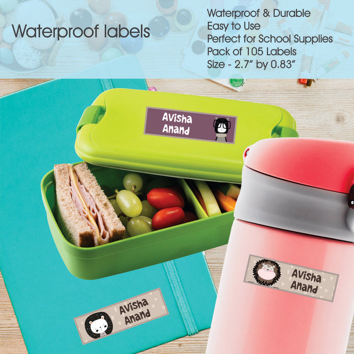 Keep your child's belongings organized in style! Our durable waterproof name labels are perfect for books, bottles, lunchboxes, stationery, and school supplies.