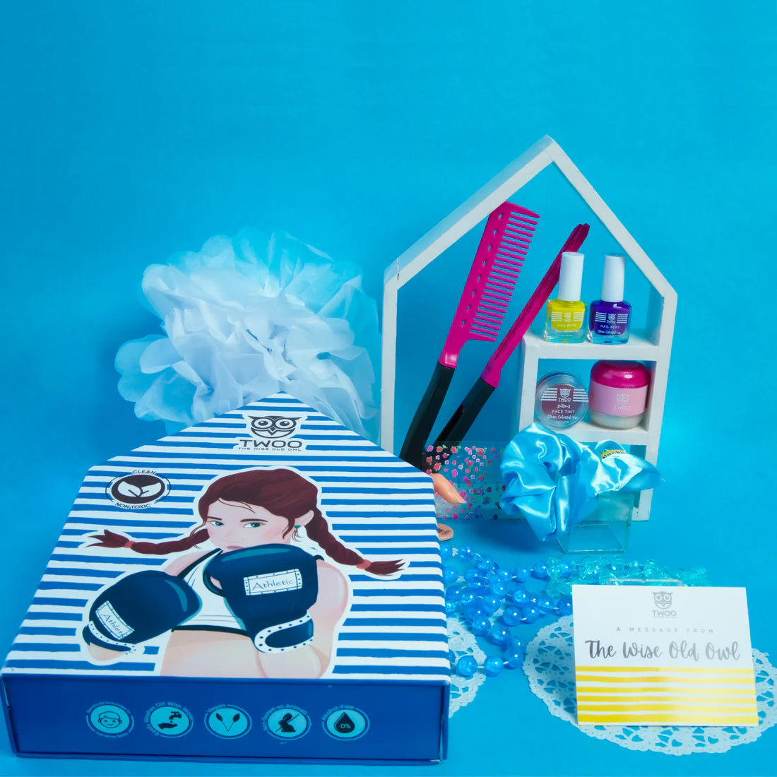 Hey, moms! The Athletic Wise Box has everything your active child needs to shine both on and off the field. This 8-in-1 box not only includes amazing kid-friendly products but also features a special message for you and your child from The Wise Old Owl. The story will boost your child's sportsmanship, while the products provide all the essentials for a winning look.