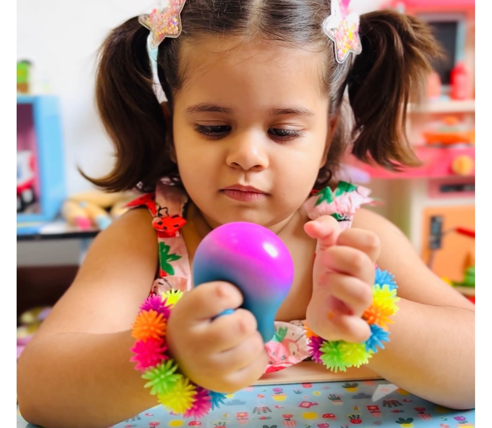 • Calming Effect: The repetitive squeezing motion is soothing and can help reduce feelings of anxiety and stress, promoting a sense of calm and relaxation.