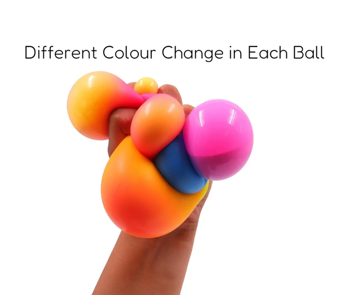 Pack Includes: Three awesome color-changing squishy balls in bright yellow, blue, and pink!