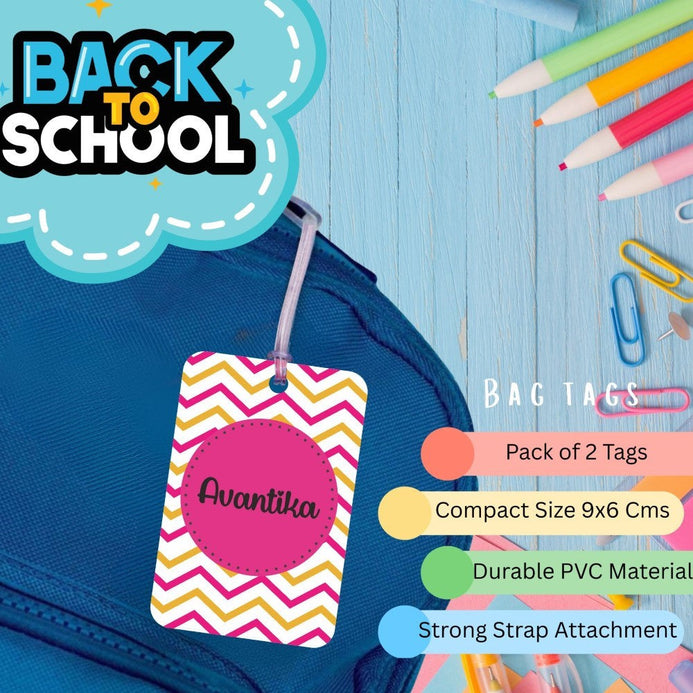 Personalised PVC Bag Tags designed to keep your belongings safe, stylish, and easy to identify. Perfect for school bags, travel luggage, and backpacks, with an added option to include an emergency contact at the back for extra safety.