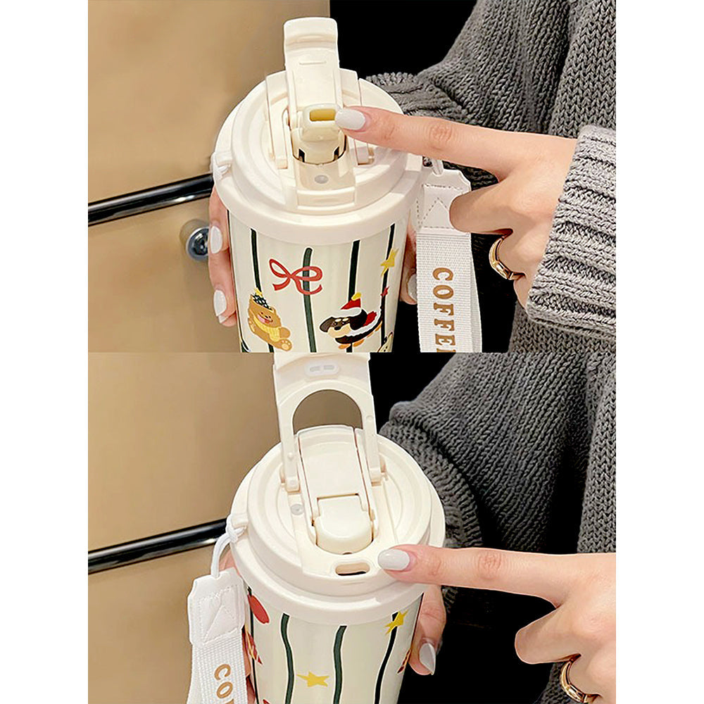 2. Double Drinking Cup Mouth: Designed with a dual-style lid that allows both direct sipping and straw drinking. So the beverage can be consumed the way one needs. The straw opening features a protective flip cover to keep the drinking area clean and hygienic.