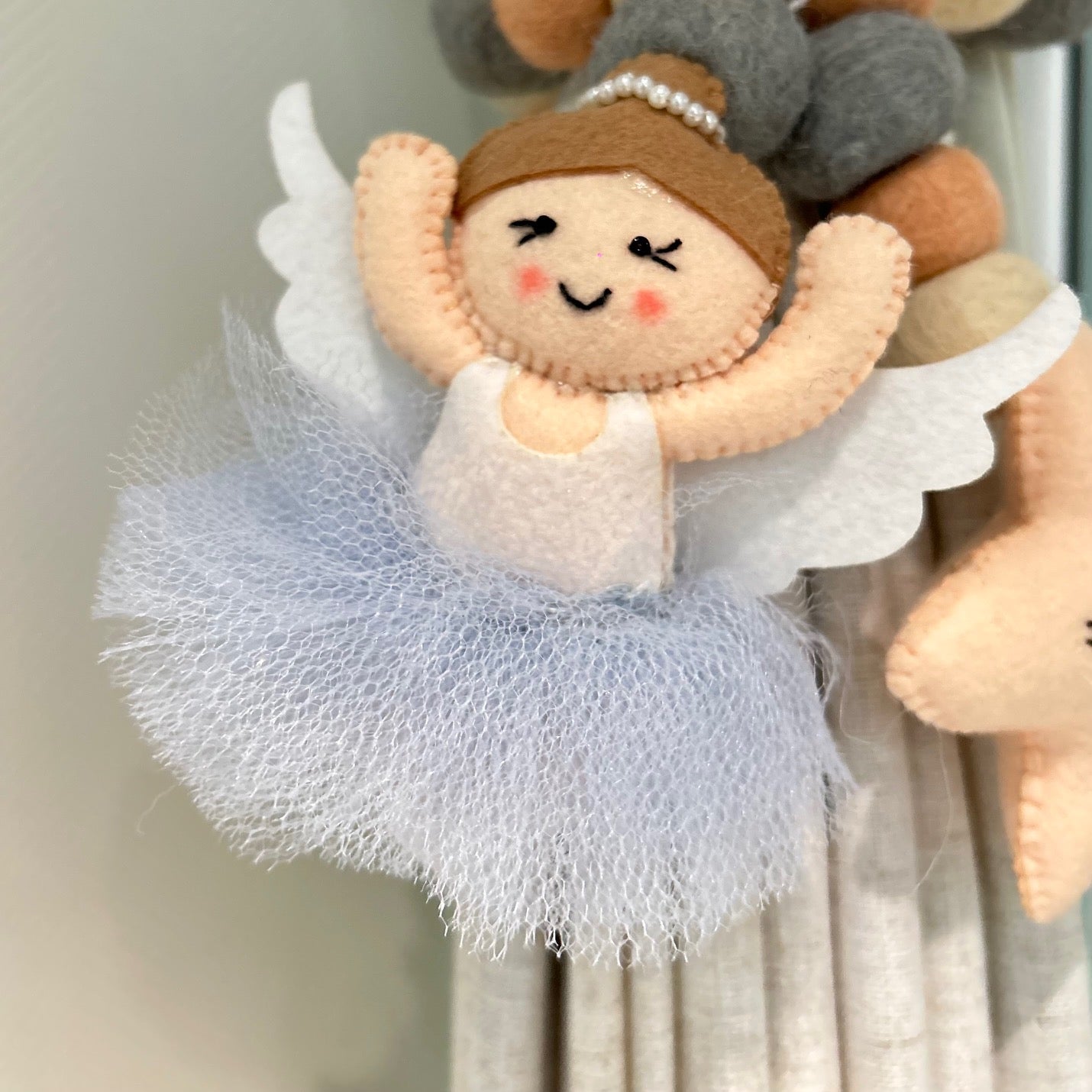 Transform your child's room with our enchanting Fairy themed Curtain Tie. In soothing shades of Purple, Gray, Peach and White, these delightful accessories not only keep curtains neatly in place but also add a charming touch to the decor. Handstitched and beautifully crafted, they're the perfect blend of functionality and fun for your little one's space!