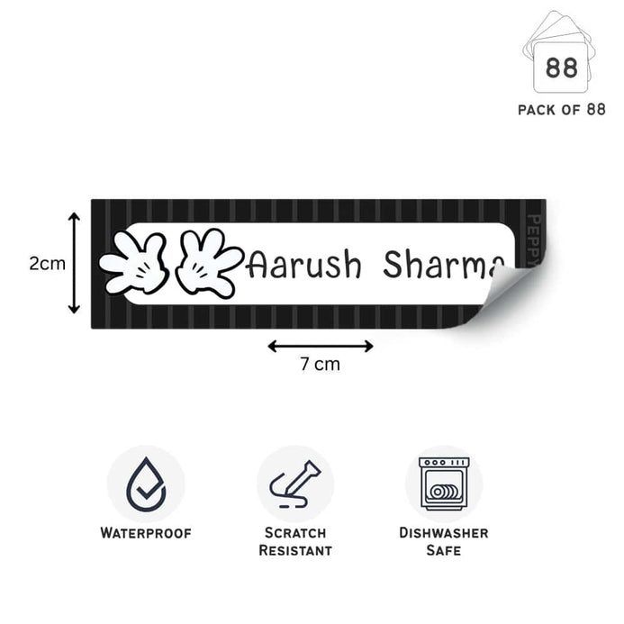 These labels can be used on your kids belongings including bottles and tiffin boxes. These labels are water proof. Let the label set for 24 hours after applying to set before exposing it to water.