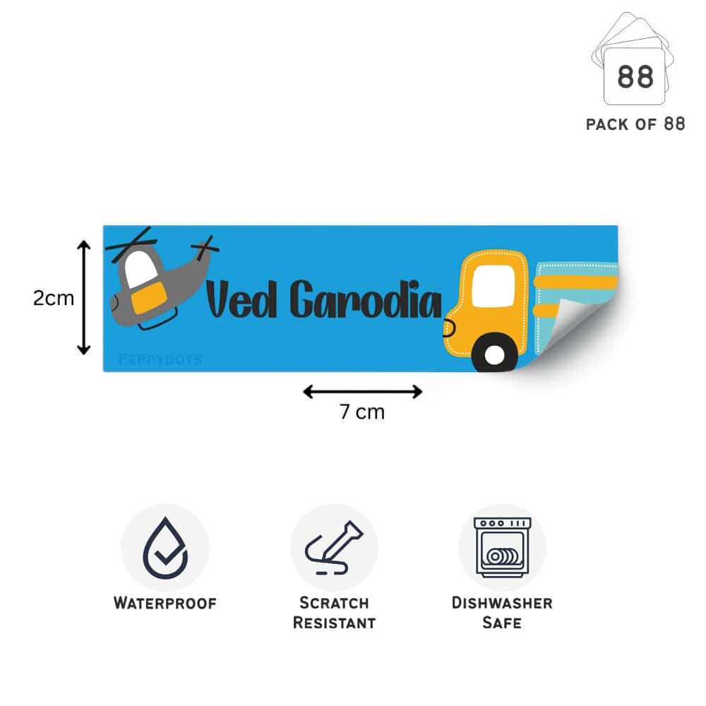 These labels can be used on your kids belongings including bottles and tiffin boxes. These labels are water proof. Let the label set for 24 hours after applying to set before exposing it to water.