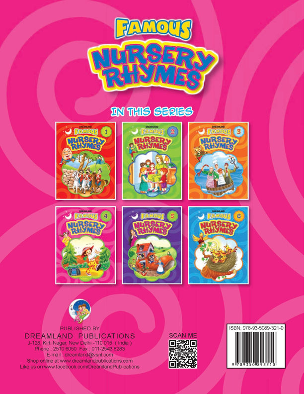 Nursery Rhymes are simple traditional songs or poems for children. These melodic small poems develop phonemic awareness, teach children to pronounce words, build their early vocabulary, and creative skills. ‘Famous Nursery Rhymes’ this book includes all-time favourite rhymes like Ring-a-Ring O’ Roses, Clap your Hands, The Muffin Man, and many more. • Ideal for age-group 6-8 • 16 pages • Ideal for primary school students • Cute cover design • Colourful presentation This charmingly illustrated book is perfect for creating memorable reading moments with young children. It will help kids start their reading journey and enjoy hours of singing and dancing with their friends, teachers, and parents.