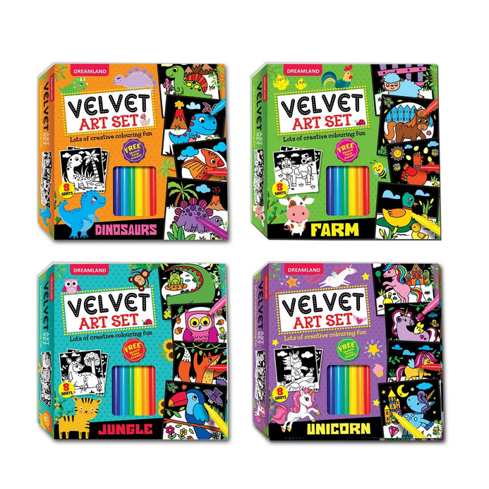Discover the magic of colouring with our new ‘Velvet Art Set’ for kids! This unique set comes with sketch pens and colouring sheets having fun and engaging illustrations on a special velvet paper that gives a soft and smooth feel. It is sure to spark creativity and inspire hours of fun with an added sensory experience.