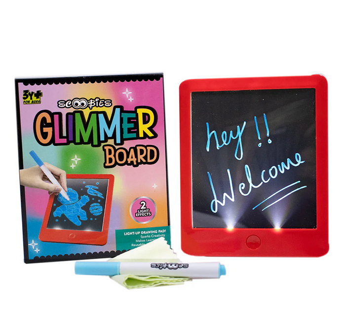 Meet the Scoobies Glimmer Board - the magical light-up drawing pad for kids 3+! With 2 glowing light modes, little artists can turn their doodles into dazzling masterpieces. Easy to draw, wipe, and reuse, it sparks imagination, builds creativity, and keeps playtime mess-free. Compact, safe, and endlessly fun—the Glimmer Board is the perfect gift for curious minds and budding creators.