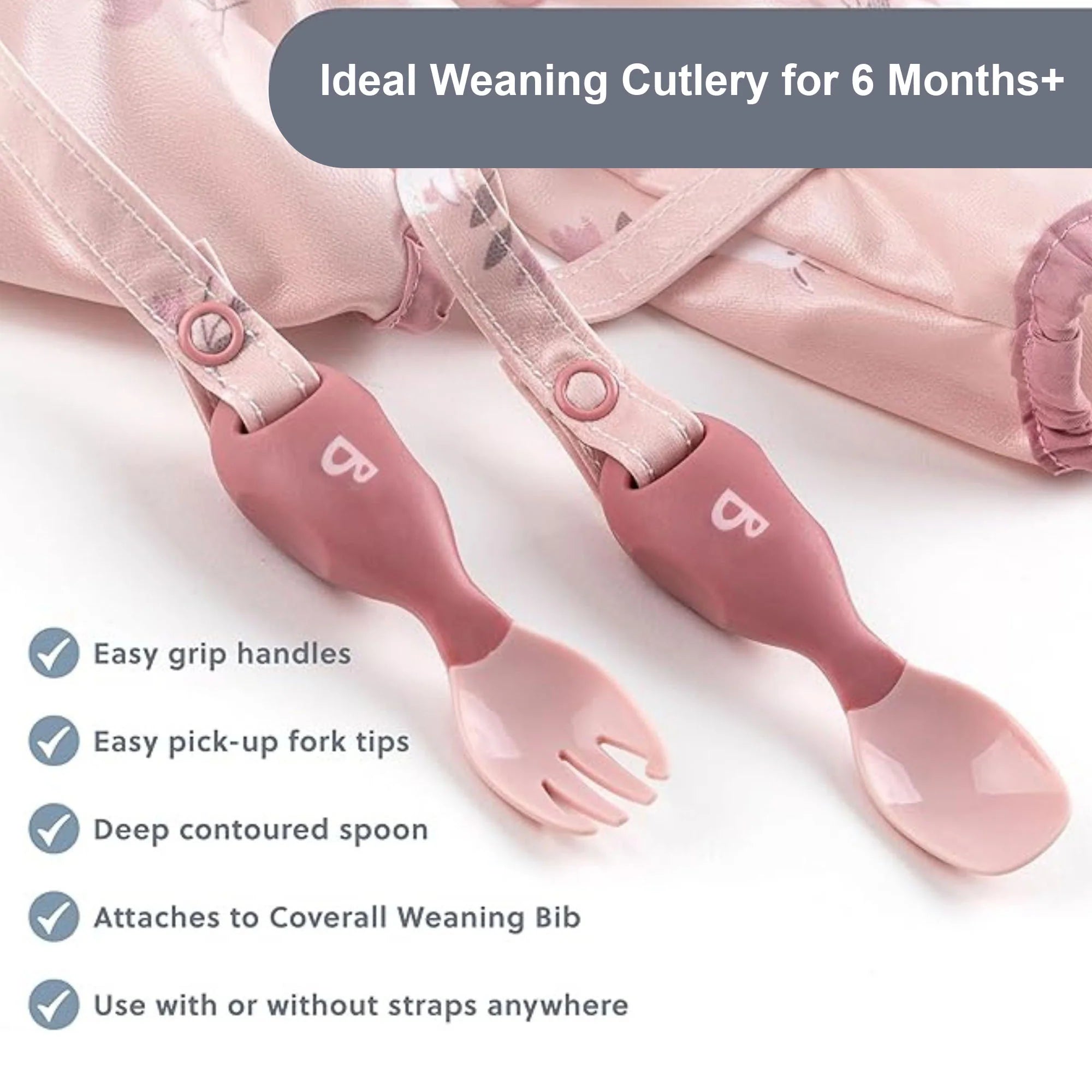 Securely straps to your Bibado Coverall Weaning Bib—so babies can drop and grab their spoon or fork without frustration. No more picking up cutlery mid-meal! Available in 6 matching colors.