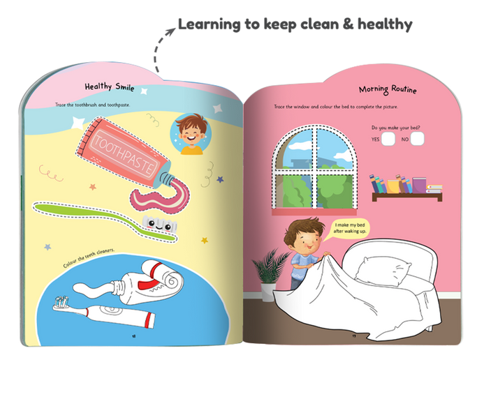 Health & Care Super Activity Book helps children explore the importance of hygiene, healthy habits, and caring for others, all through fun, hands-on play! Packed with engaging activities like tracing, matching, spot the differences, and creative drawing, this book keeps kids happily entertained while nurturing fine motor skills, focus, and early learning. With bright illustrations and glossy, smudge-resistant pages, it’s perfect for little hands, even during messy moments. Lightweight and portable, it’s ideal for travel,summer breaks, or quiet time at home. A wonderful screen-free way to introduce kindness, health, and self-care through playful learning!