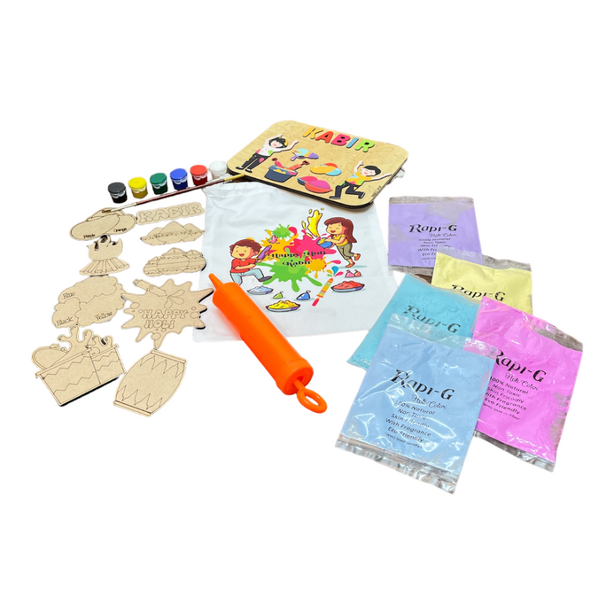 Looking for a fun and creative way to celebrate Holi with your kids? Our DIY Painting Kit is just what you need! Watch their faces light up as they paint beautiful Holi-themed designs on MDF wood using our high-quality paint colors. It's a wonderful way to encourage artistic expression while adding a personal touch to your festive decorations. Order yours today and let the colorful fun begin!