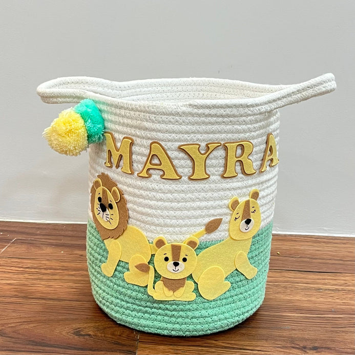 Our Basket crafted from durable jute and soft cotton, it offers both sturdiness and comfort. Perfect for carrying books, toys, or treasures from a galactic journey, this basket is as functional as it is enchanting. Elevate your child's storage with a sprinkle of cosmic magic and practicality, and let their imagination soar among the stars. This space theme basket in bright hues serves as a dual purpose of both kid's room decor as well as storage made easy with two convenient sizes and comes embellished with planets, astronaut, rocket and Earth.