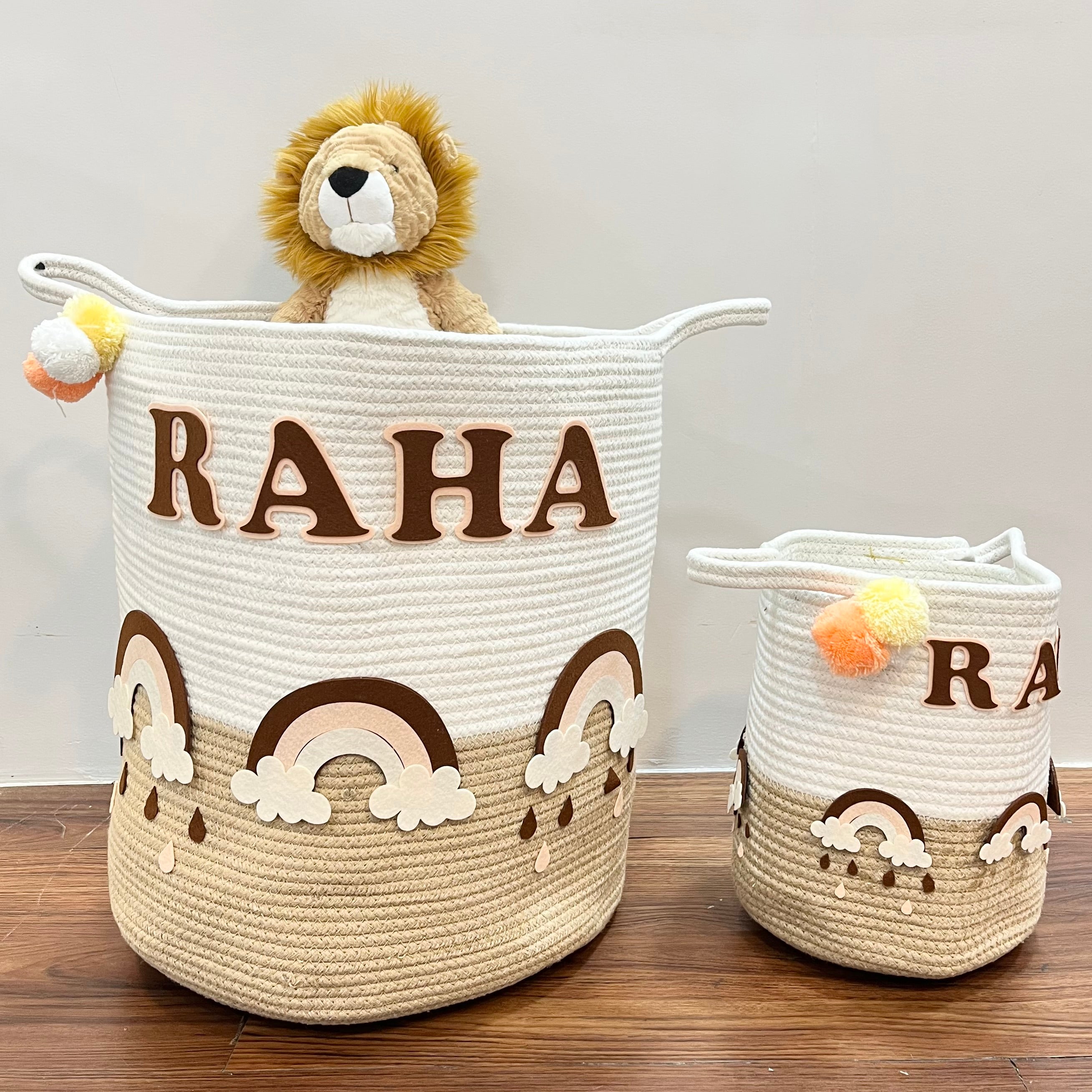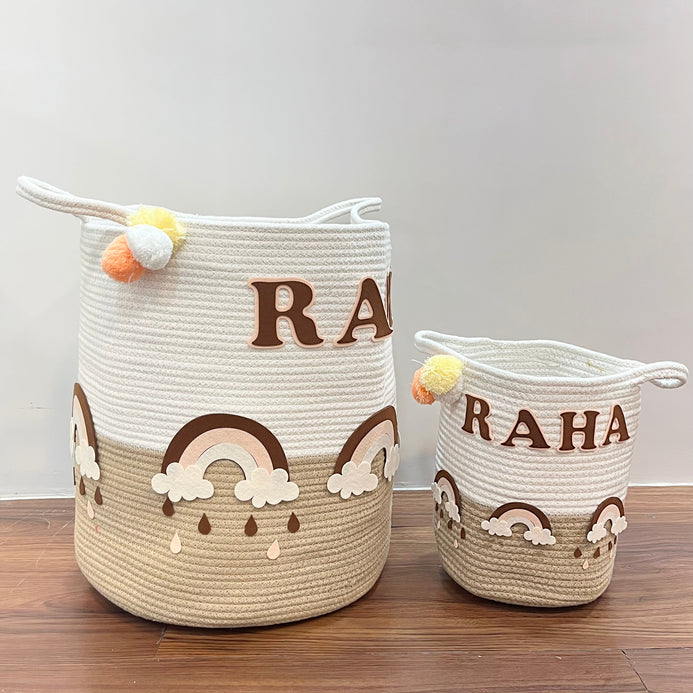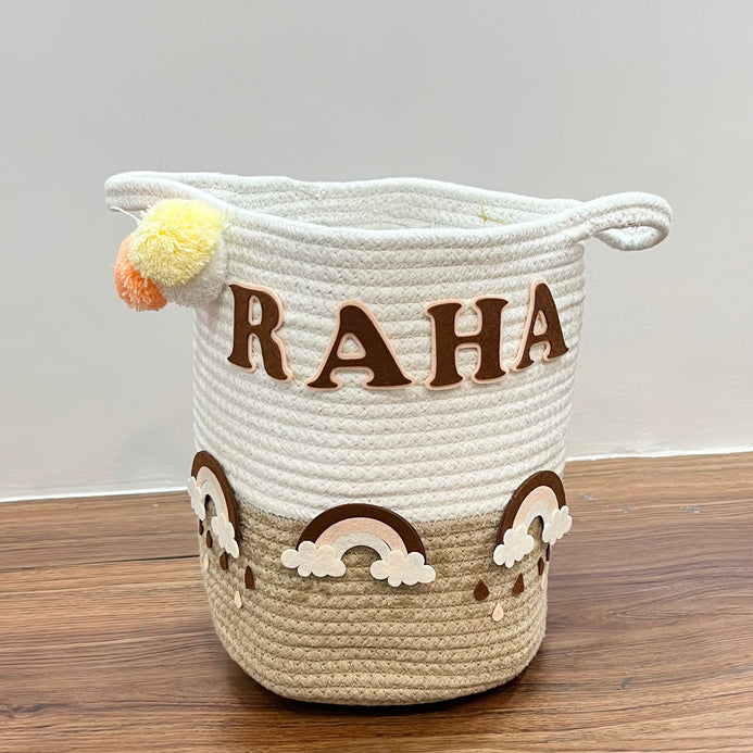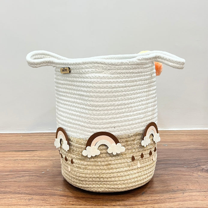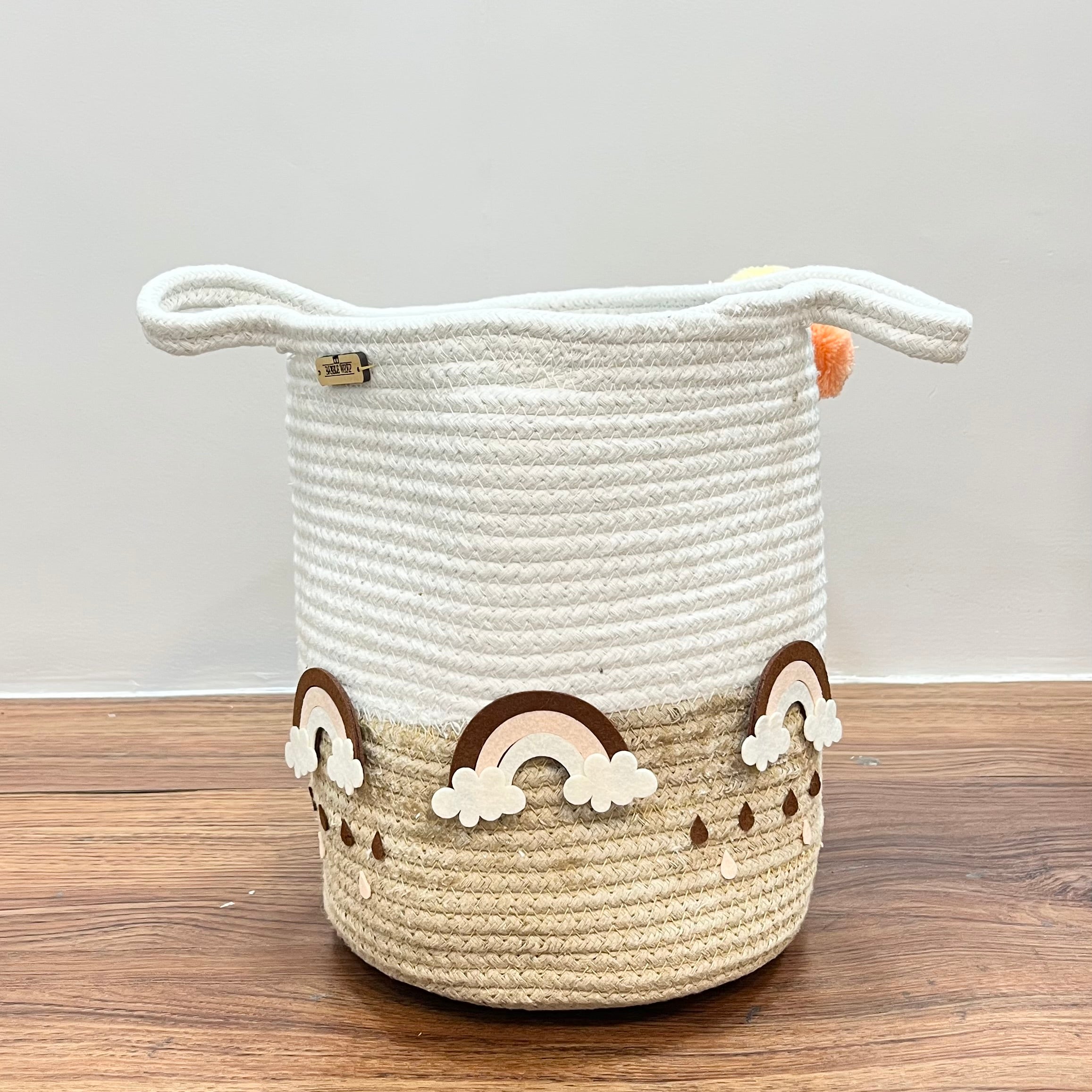 Jute Cotton Storage Basket | Rainbow Raindrops