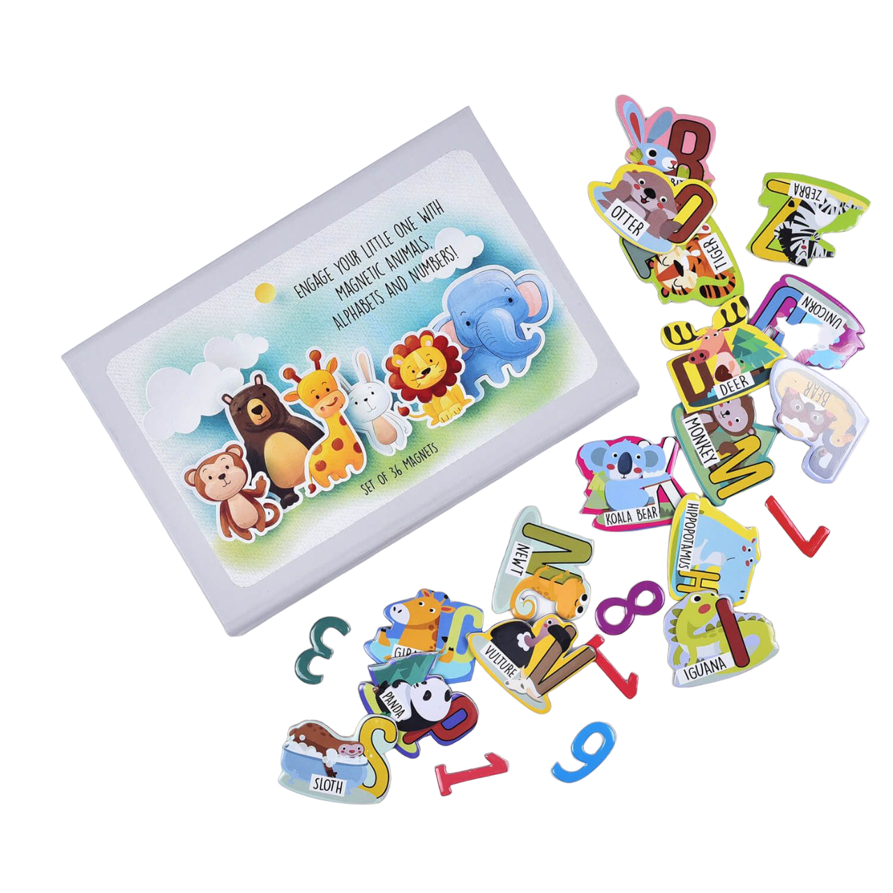 A total of 36 magnets including 10 number magnets with 26 alphabets.