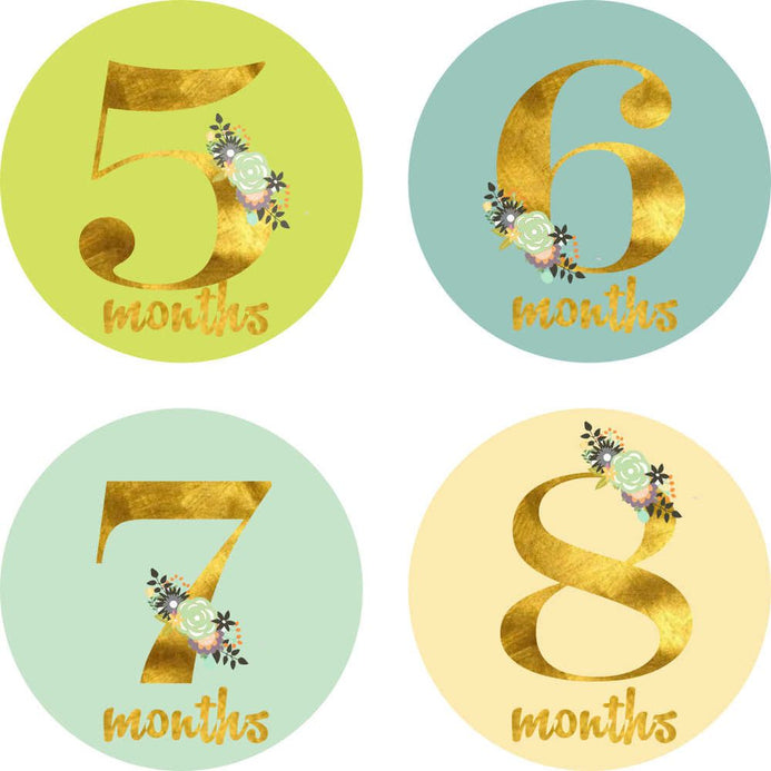 These monthly stickers are a fun and perfect way to record the growth of your little one!! Babies grow so quickly, so be sure to capture every change along the way. Each month simply peel one sticker off the paper and place it on your baby's clothing or any other creative location and click away !!