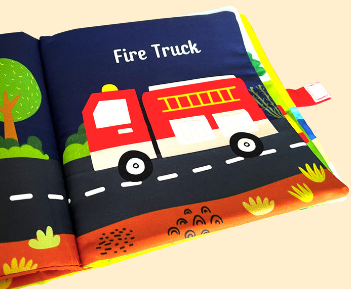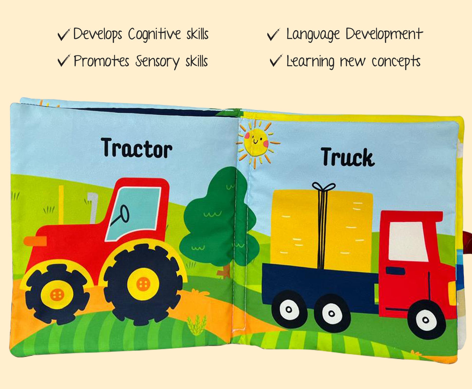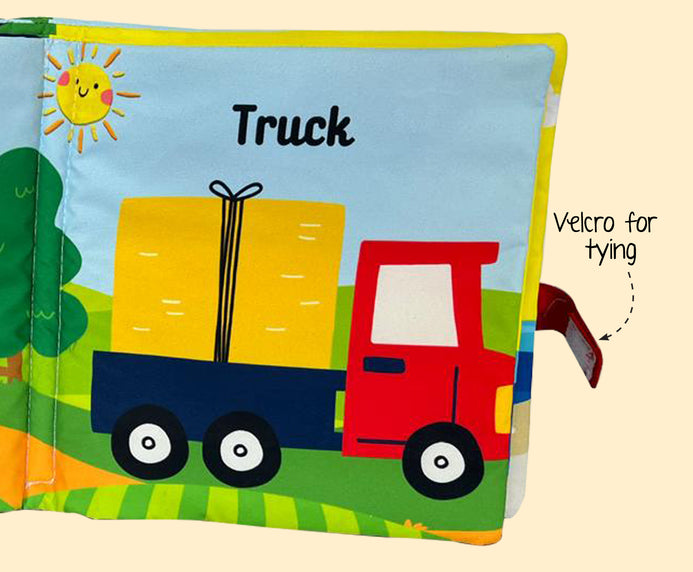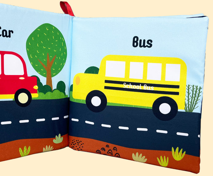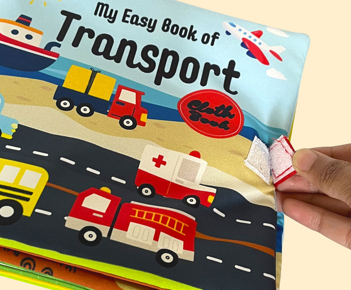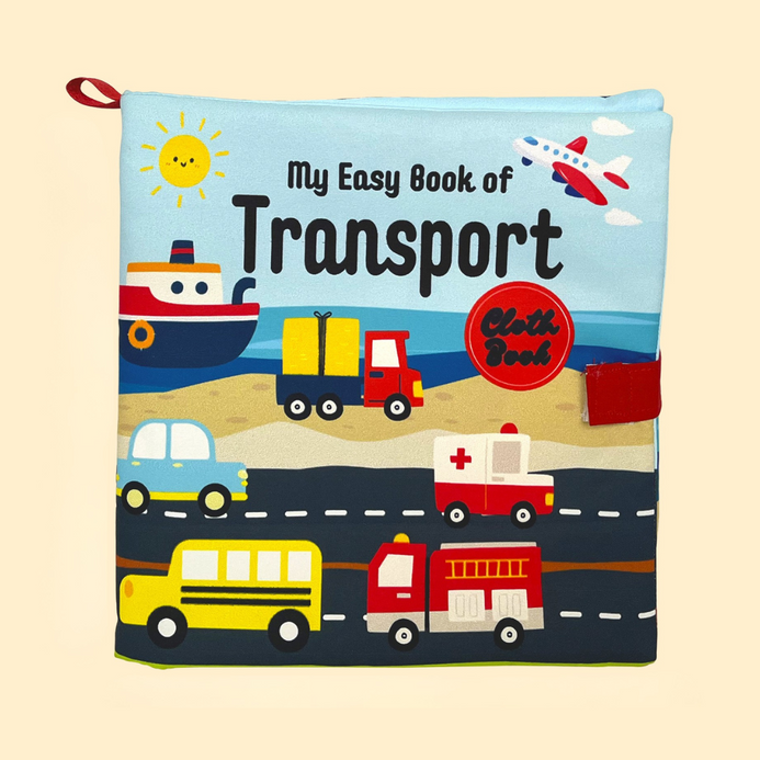 Let your child discover the exciting world of transportation with this delightful cloth book! Featuring vibrant illustrations of cars, planes, boats, and trains, this book introduces little learners to different modes of transport in a fun and interactive way. The soft, baby-friendly material makes it safe and easy to handle, encouraging sensory development and early reading habits. Made with durable and washable fabric, it's perfect for endless hours of learning and play. Collect all three books in the series—Animals, Farm, and Transport—for a complete early learning experience!