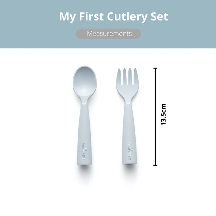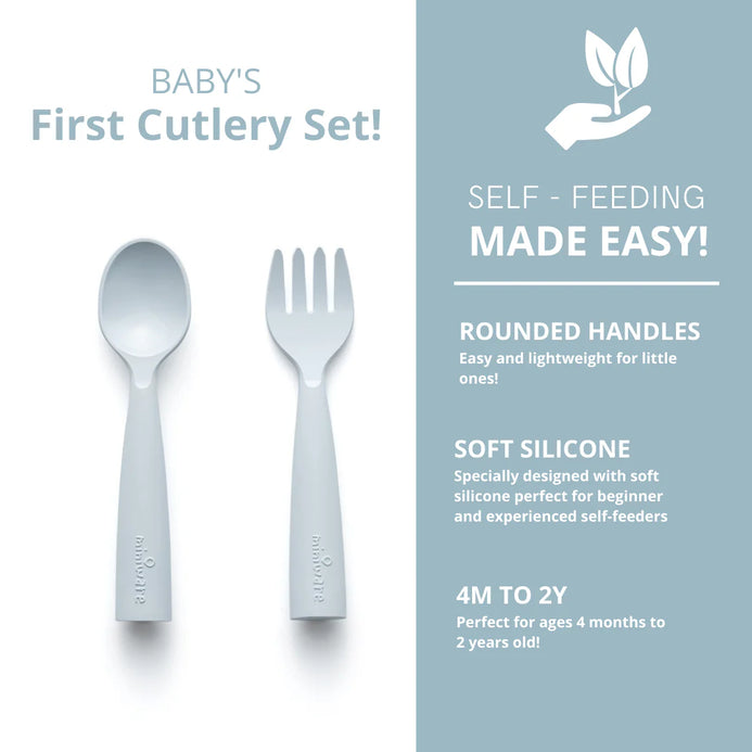 Miniware My first Cutlery Fork & Spoon Set is perfect for little ones who are just transitioning into learning to feed themselves independently. If your little one is ready for the next step to becoming an eating master this set is the perfect first cutlery! Itƒ??s made with 100% natural plant based ingredient which not only guarantees your babyƒ??s well-being, but also protects the environment.