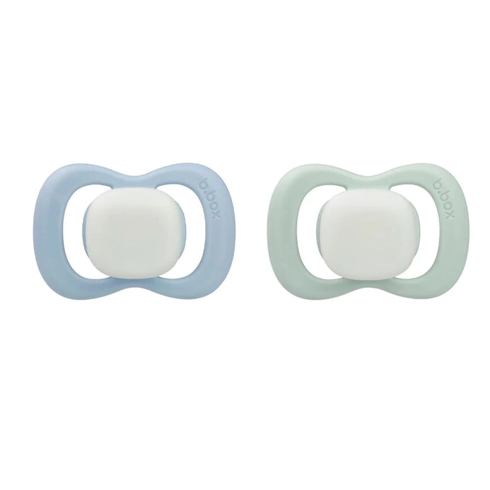 As good looking as they are functional, b.box soothers are designed to soothe your little one safely and with style. Featuring silver-based antimicrobial technology, they inhibit the growth of up to 99.9% of nasties. The German-made natural latex cherry teat is ideal for nursing babies, while the shield includes large airflow vents to promote air circulation around the mouth, reducing moisture build-up and irritation. The ergonomic teat and shield shape ensure the right fit every time, making it easy for little ones to place the soother back in their mouth and resettle independently. Thin teat necks support proper dental development, and for cleaning, latex soothers are safe for boiling water, microwave, and steam sterilisation (not suitable for UV sterilisation).