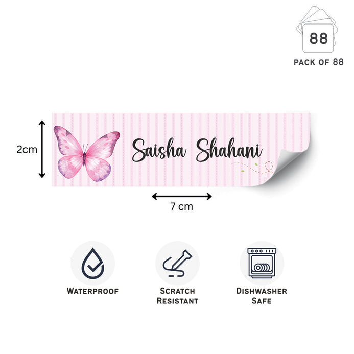 These labels can be used on your kids belongings including bottles and tiffin boxes. These labels are waterproof. Let the label set for 24 hours after applying to set before exposing it to water.