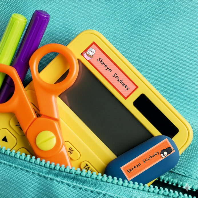 These labels can be used on your kids belongings including bottles and tiffin boxes. These labels are waterproof. Let the label set for 24 hours after applying to set before exposing it to water.