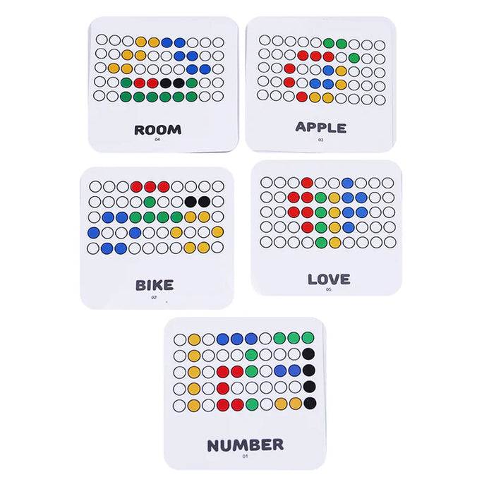 - Take a pattern card, use the magnetic stylus to lift colorful beads to make a similar pattern