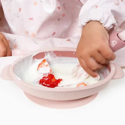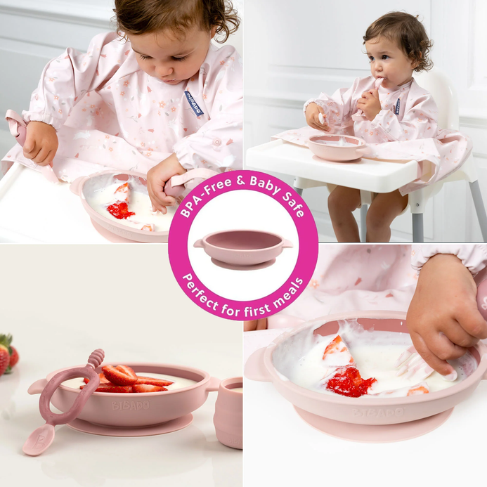 Introduce a world of foods, tastes and textures with the Bibado Silicone Suction bowl. Ergonomically designed too aid scooping. Sturdy suction keeps it in place while little hands explore. Little ones can practice scooping and self feeding helping whilst mastering cutlery control and vital independent Made from LFGB-approved medical-grade silicone, you’ll have complete peace of mind that they’re eating from safe antibacterial and antimicrobial surfaces. Available in 3 beautiful colorways, our silicone divider plates and bowls are the perfect match for our award-winning, two-tone silicone Sippit training cups and cutlery for complete mealtime solutions.