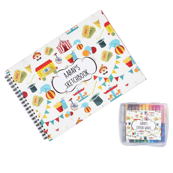 Personalised Sketch Book with Name Crayons | Circus