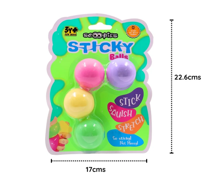 Pack Includes: Four adorable sticky squishy balls in pastel green, yellow, pink, and purple!