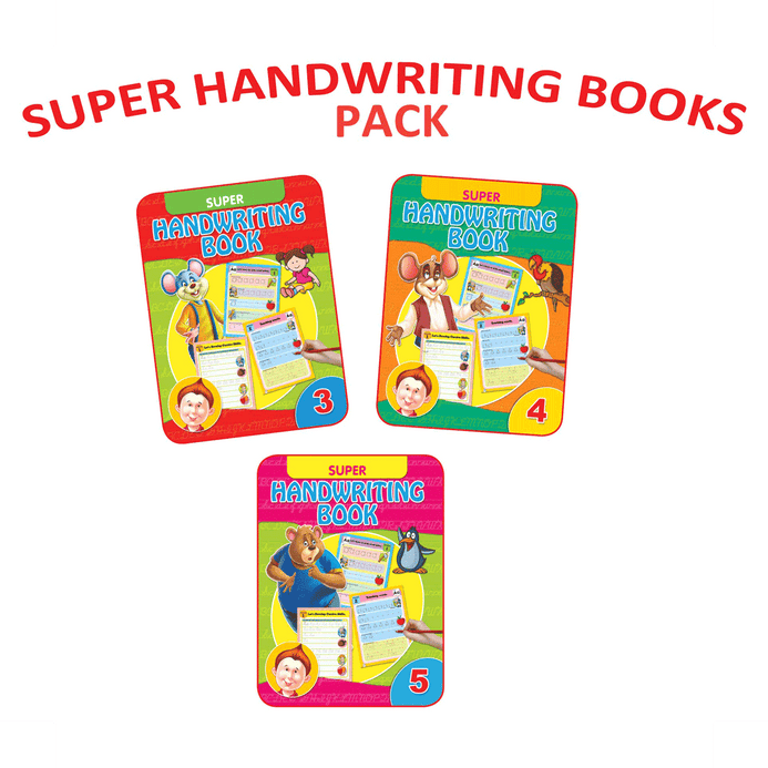 Great educational complement for primary school children ‘Super Handwriting Books Pack’ is a fun and innovative resource to teach kids writing each letter of the alphabet, combining letters to make words, and forming sentences with easy-to-follow directions. This is the perfect set of books to give beginner learners a head-start with 60+ pages of tracing and writing practice in each book. • Ideal for age-group 3-5 • A set of three books having 64 pages each • Cute cover design • Colourful presentation Organised in a progressive skill-building way these amazing handwriting practice books will help children develop their confidence to write neatly and improve their hand-eye coordination and motor skills.