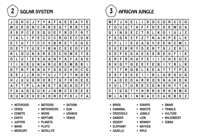 ‘Super Word Search’ this pack of four books is a fantastic collection of word search puzzles on various topics. These books will provide hours of entertainment, help the puzzlers enhance their attention, general knowledge, language, and visual search. • Perfect for ages 6-15 • Four books of 192 pages each • Interesting over 150 topics • Easy-to-read format • Solutions included Ideal for all word-search fans, with over 150 puzzles and solutions provided in each book in easy-to-read format these books are both challenging and enjoyable. These books make a great gift for all to put their observation and word-finding skills to the ultimate test.