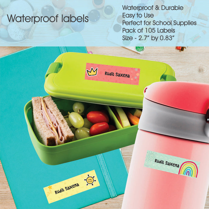 Keep your child's belongings organized in style! Our durable waterproof name labels are perfect for books, bottles, lunchboxes, stationery, and school supplies.