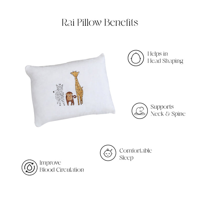 Infant Rai pillow hand block printed on organic cotton muslin. Muslin fabric, stuffed with mustard (Rai) seeds, made using 100% Cotton.