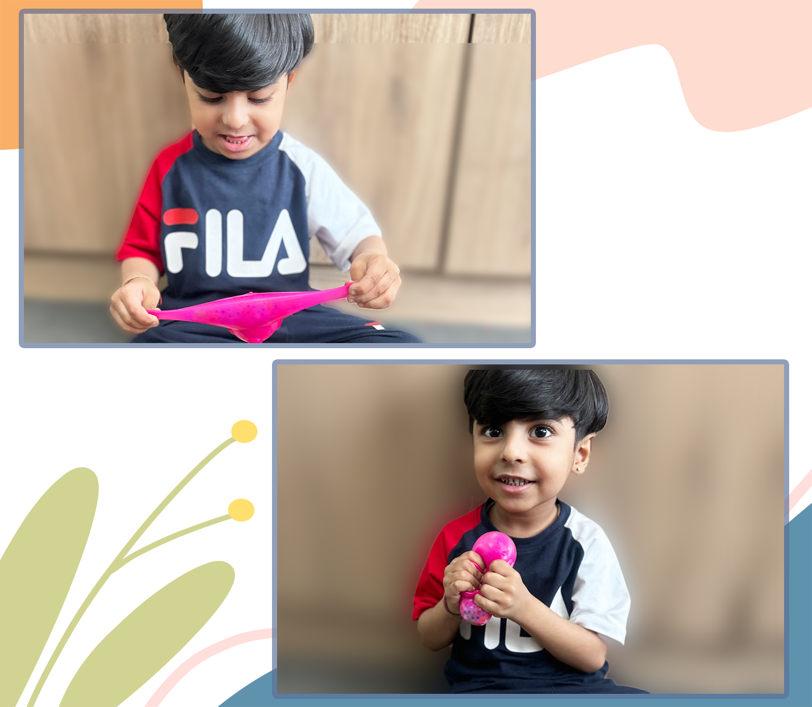 • Soft, squishy bear filled with gentle beads for a fun squeeze.
