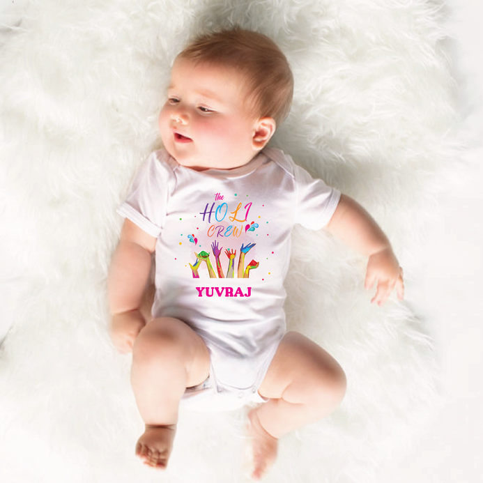 "Celebrate the festival of colors in style with our personalized Holi-themed rompers. Vibrant, playful, and perfect for every little one, these rompers bring the spirit of Holi to life with a custom touch. Bright, comfy, and ready for fun!"