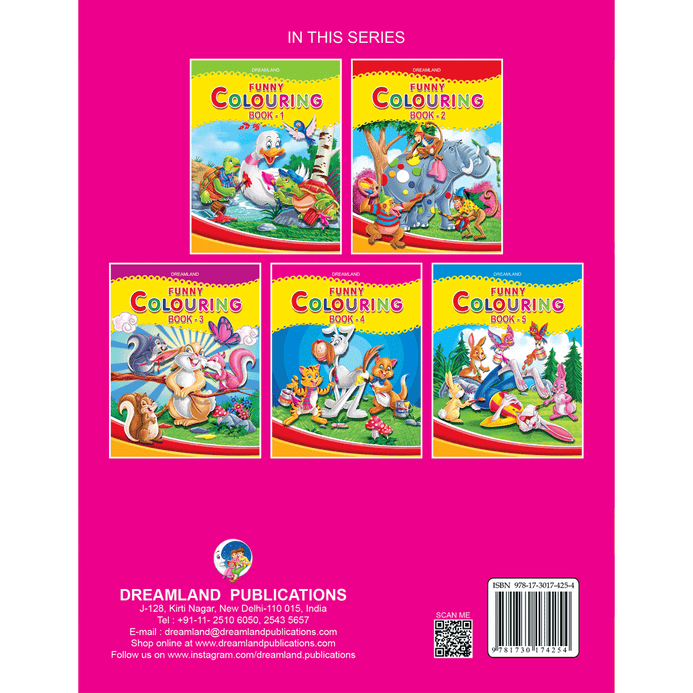 ‘Funny Colouring Book’ this book is a perfect tool to teach little artists how to colour. It is a perfect book that contains a lot of cute funny pictures to copy and colour such as a joker playing the drum, a boy playing in rain, a man running behind a fly, and many more. • Ideal for age-group 2-6 • 32 pages • Cute cover design • Colourful presentation • Perfect for colouring with pencil colours, crayons, or sketch pens Perfect for all colouring lovers this book will introduce kids to different colours and provide hours of fun and creativity. It will help them practice holding a pencil or crayon correctly, improve colouring skills, and motor control needed for early learners.