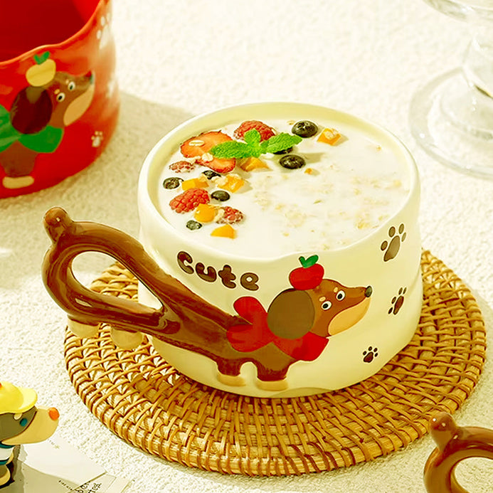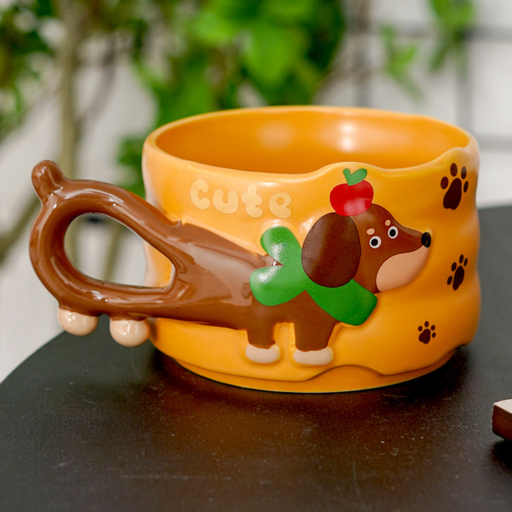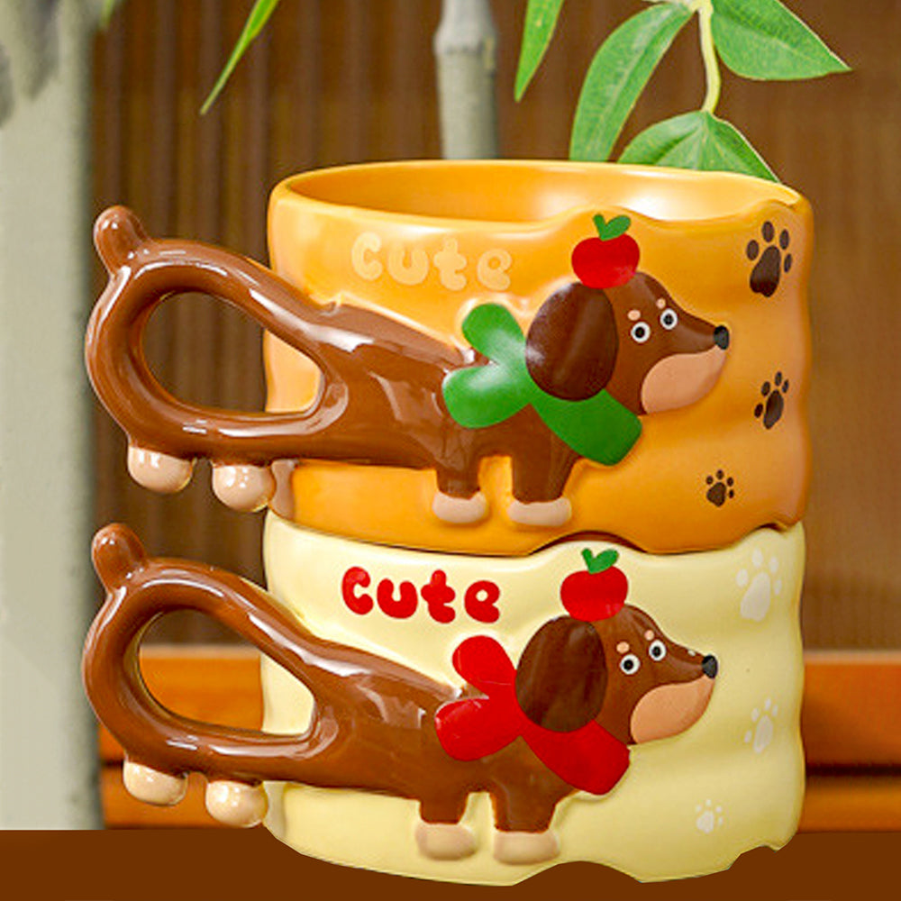 1. 2pcs Stacked Design Cup Set: This cute dog-themed ceramic stacked mug set is perfect for anyone who loves fun and playful designs. Crafted in a rich combination colors with adorable puppy artwork and charming paw prints, it features a unique 3D dog tail handle that adds an extra touch of whimsy and delight.