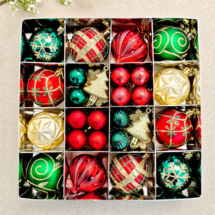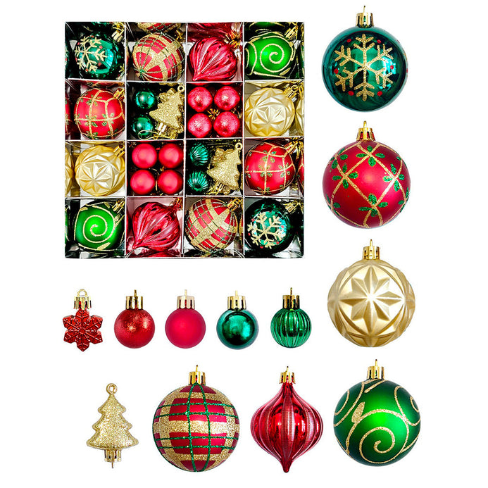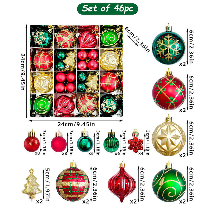 46Pcs Stripes & Flakes Red, Green Gold Christmas Tree Balls
