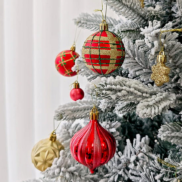 2. Stripes & Flakes Themed Xmas Balls: This set includes 46 beautifully crafted ornaments inspired by classic Christmas elegance. The collection features striped baubles, snowflake-print balls, glossy spheres, glittered ornaments, swirl-pattern drops, tree-shaped accents and more. Each ornament is intricately designed, bringing a perfect blend of traditional festivity and modern style to your Christmas tree.