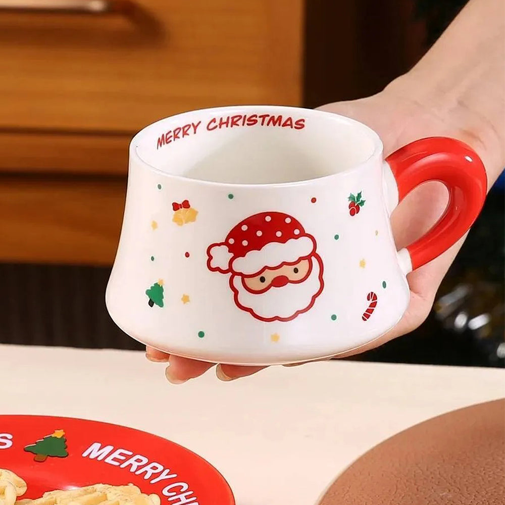 2. Design: This beautifully crafted ceramic cup comes with a matching red saucer, both decorated with cute Santa artwork, mini festive icons, and “Merry Christmas” detailing. The set includes an adorable 3D Christmas Tree Spoon, adding a playful and premium touch to your festive drinkware collection.