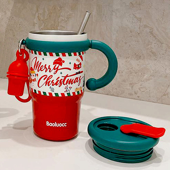 1.Design: This adorable Christmas-themed insulated sipper is a festive must-have, featuring charming holiday illustrations, a bold “Merry Christmas” print, and a playful color combination of red & green. A perfect blend of cuteness and practicality — ideal for Christmas gifting and daily use.