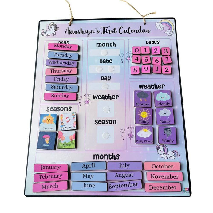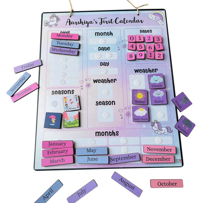 Teaching kids importance of changes each day brings is very important in today's time when kids are used to digital calender's. This is a fun calendar activity which covers the date, days of the week, months , seasons and weather. The calendar has all the days of the weeks, months in the year, 4 seasons, 6 weather conditions and days cutouts which needs to be pasted in today's column to ascertain whats the date, month, climate and season on the present day. Its a great way to teach the days and months to the kids.